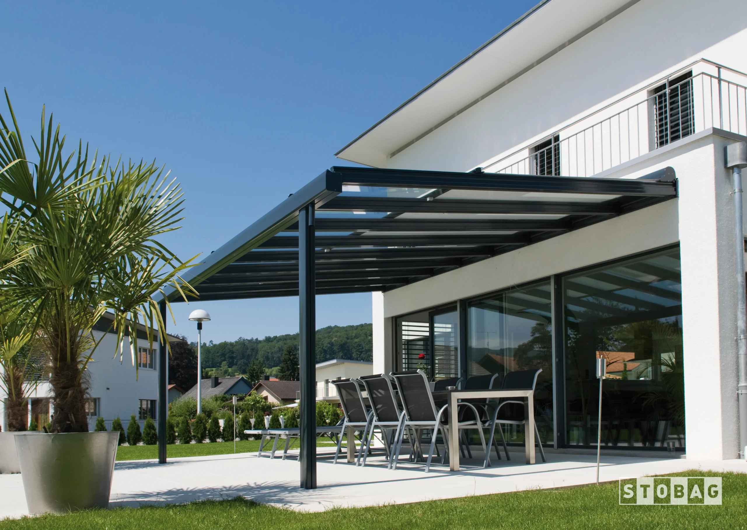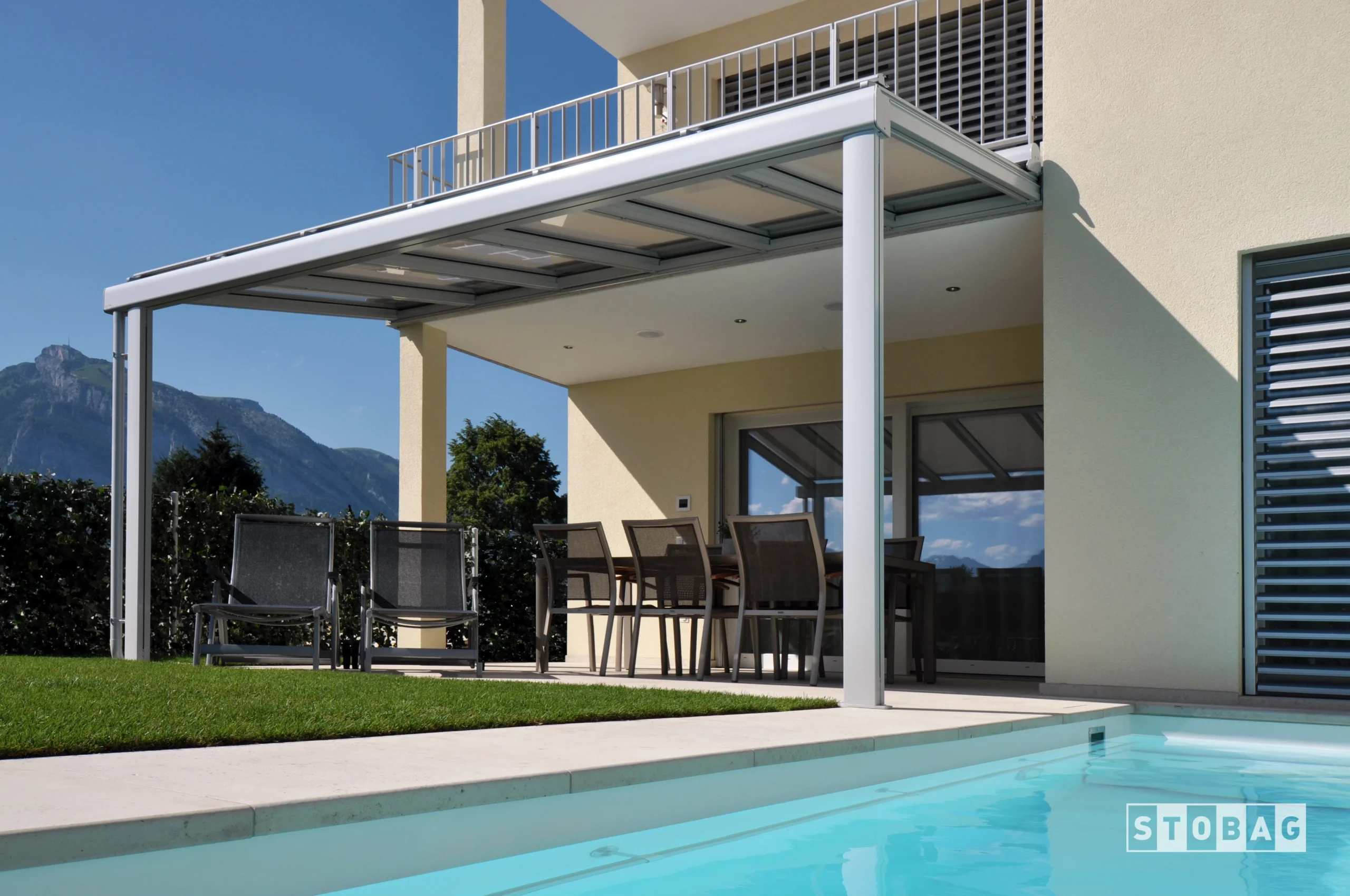 Unsere Glasdachsysteme sind robust konstruiert und bieten dank ihrer stabilen Ausführung Schutz vor Regen und Sonne. Sie sind mit wasserfesten Tüchern ausgestattet, die eine ganzjährige Nutzung ermöglichen. Die Systeme passen sich verschiedenen architektonischen Stilen an und sind eine hervorragende Wahl für alle, die ihre Aussenbereiche funktional und stilvoll gestalten möchten.